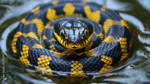 © junet, Fototapeta premium Coiled Snake in Water, Close-up