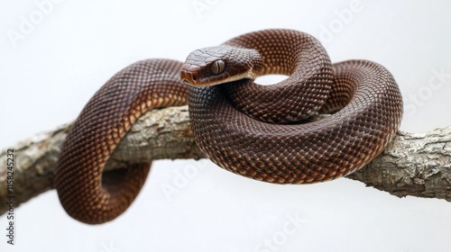 © munirahsamsudin, Fototapeta premium Coiled Snake on Branch with Intricate Scales