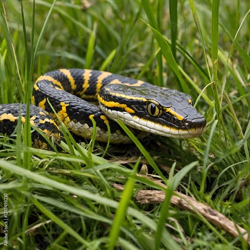 © KeeriwalaGamage, Fototapeta premium Coiled Spider Tailed Horned Viper Nestled in Cacti Blending into the Dry Desert Landscape