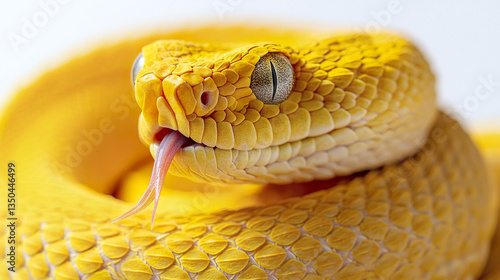 © Thanthara, Obraz premium coiled yellow viper with its patterned scales glistening