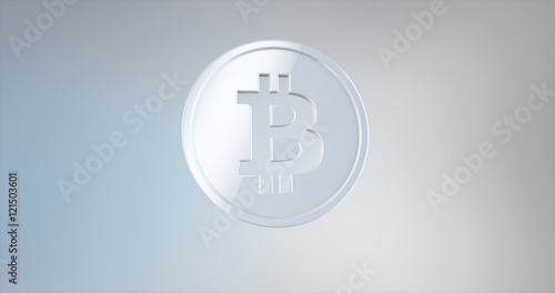 © videostore, Obraz premium Coin Bitcoin White 3d Icon on gradient background