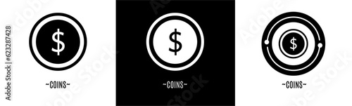 © Hafifah, Obraz premium Coins logo set. Collection of black and white logos. Stock vector.