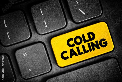© dizain, Naklejka premium Cold Calling is a technique in which a salesperson contacts individuals who have not previously expressed interest in the offered products or services, text button on keyboard, concept background