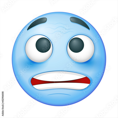 Fototapeta premium Cold emoji on white background. Vector frozen emoji. Blue face. Cute emoticon.