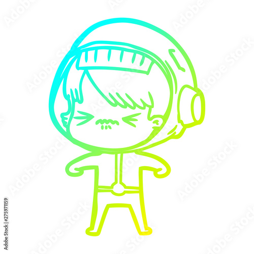 Fototapeta premium cold gradient line drawing angry cartoon space girl