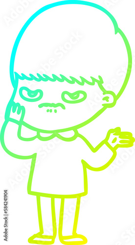 Fototapeta premium cold gradient line drawing annoyed cartoon boy