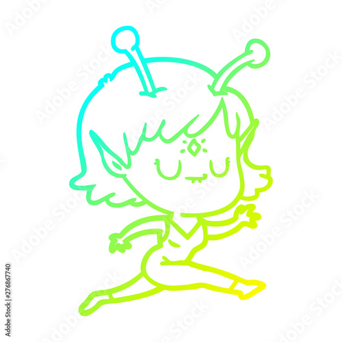 © lineartestpilot, Naklejka premium cold gradient line drawing cartoon alien girl jumping