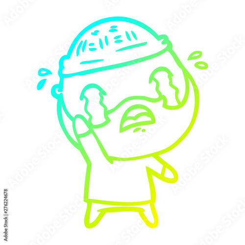 © lineartestpilot, Fototapeta premium cold gradient line drawing cartoon bearded man crying waving goodbye