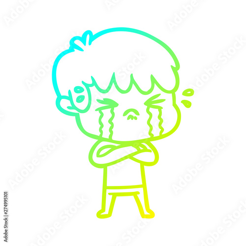 Obraz premium cold gradient line drawing cartoon boy crying