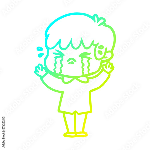 Obraz premium cold gradient line drawing cartoon boy crying