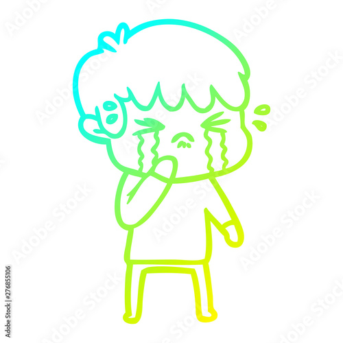 Obraz premium cold gradient line drawing cartoon boy crying