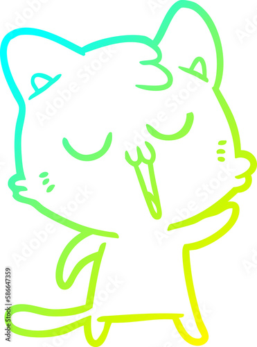 Fototapeta premium cold gradient line drawing cartoon cat singing
