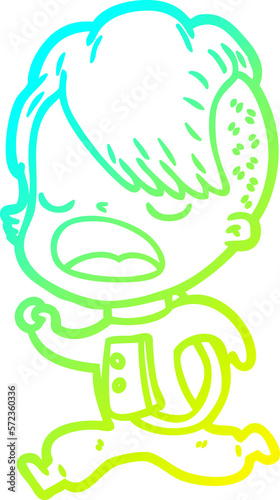 Obraz premium cold gradient line drawing cartoon cool hipster girl in space suit