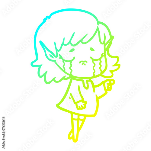 © lineartestpilot, Fototapeta premium cold gradient line drawing cartoon crying elf girl