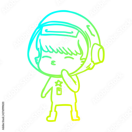 Obraz premium cold gradient line drawing cartoon curious astronaut