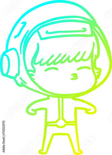 © lineartestpilot, Fototapeta premium cold gradient line drawing cartoon curious astronaut