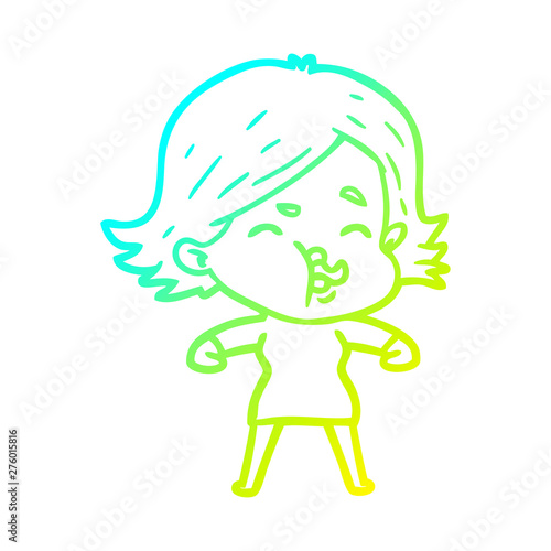 Obraz premium cold gradient line drawing cartoon girl pulling face