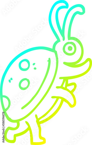 Naklejka premium cold gradient line drawing cartoon ladybug