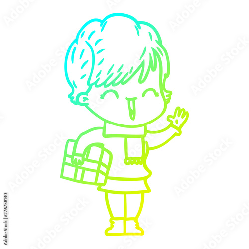 Fototapeta premium cold gradient line drawing cartoon laughing woman