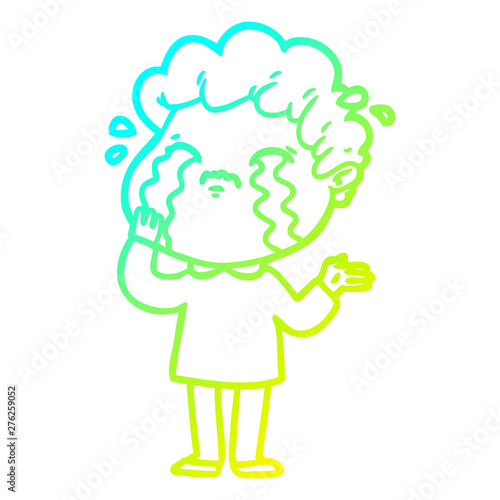 Obraz premium cold gradient line drawing cartoon man crying
