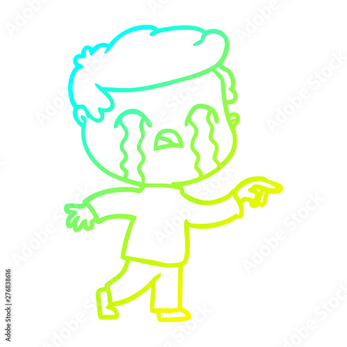 Obraz premium cold gradient line drawing cartoon man crying