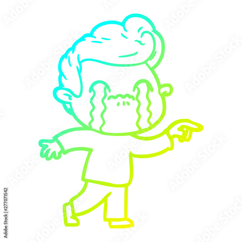 Obraz premium cold gradient line drawing cartoon man crying