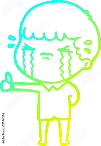 Obraz premium cold gradient line drawing cartoon man crying