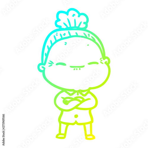 © lineartestpilot, Fototapeta premium cold gradient line drawing cartoon peaceful old woman