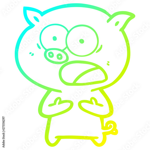 © lineartestpilot, Naklejka premium cold gradient line drawing cartoon pig shouting