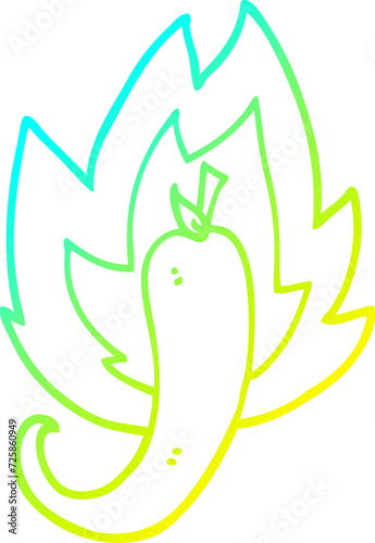 Fototapeta premium cold gradient line drawing cartoon red hot chili