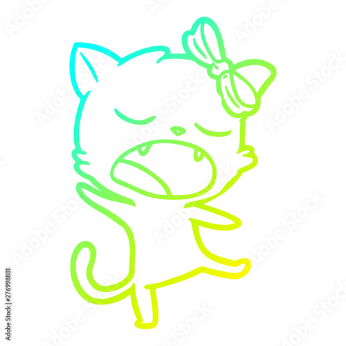 © lineartestpilot, Fototapeta premium cold gradient line drawing cartoon singing cat