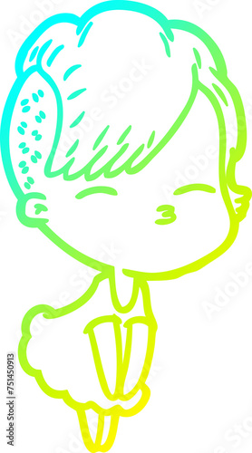 Fototapeta premium cold gradient line drawing cartoon squinting girl in dress