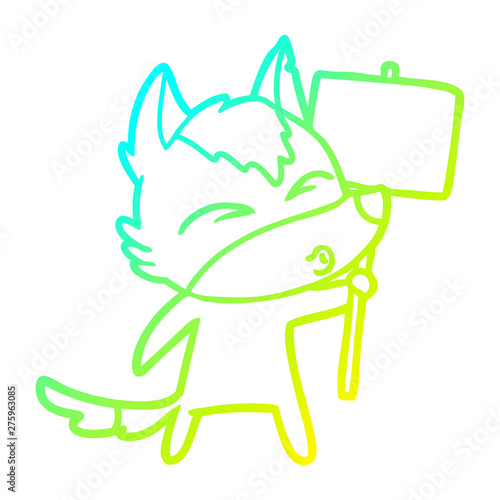 © lineartestpilot, Fototapeta premium cold gradient line drawing cartoon wolf with protest sign