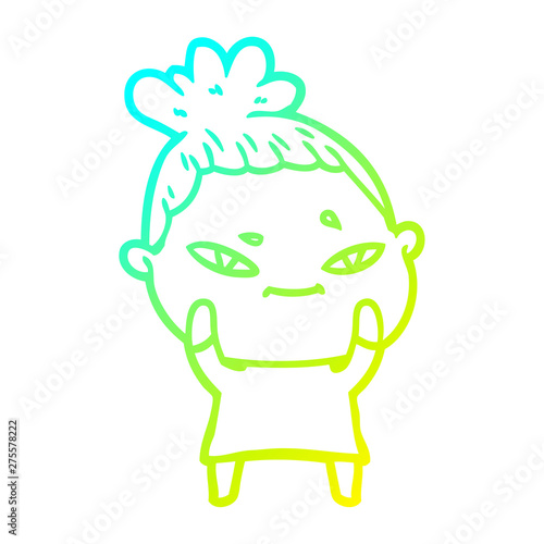 Fototapeta premium cold gradient line drawing cartoon woman
