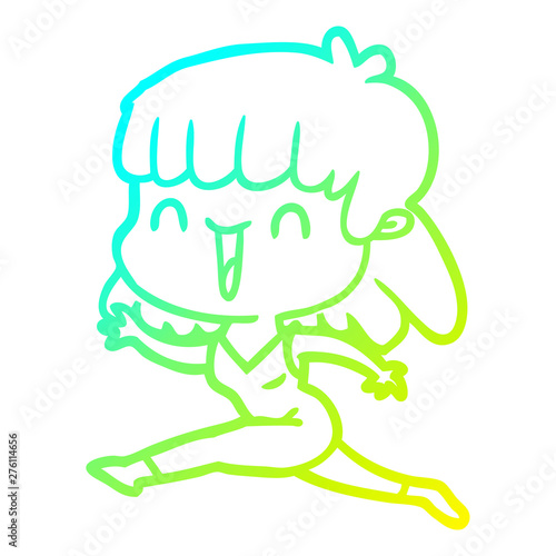 Fototapeta premium cold gradient line drawing cartoon woman
