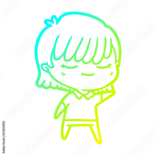 Fototapeta premium cold gradient line drawing cartoon woman
