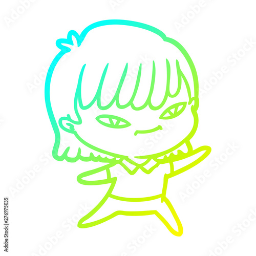 Fototapeta premium cold gradient line drawing cartoon woman