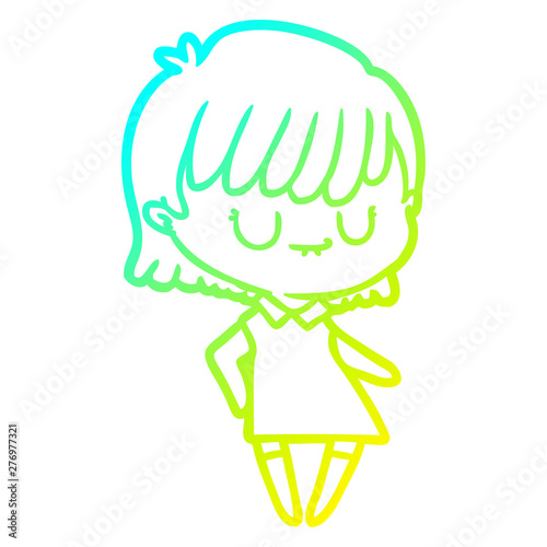 Fototapeta premium cold gradient line drawing cartoon woman