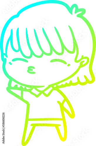 Fototapeta premium cold gradient line drawing cartoon woman