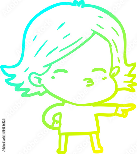 Fototapeta premium cold gradient line drawing cartoon woman pointing