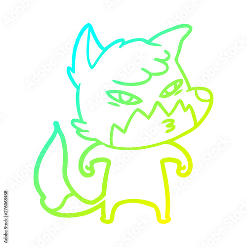Fototapeta premium cold gradient line drawing clever cartoon fox