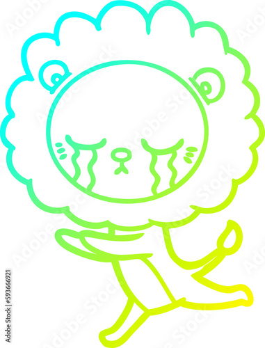 Fototapeta premium cold gradient line drawing crying cartoon lion