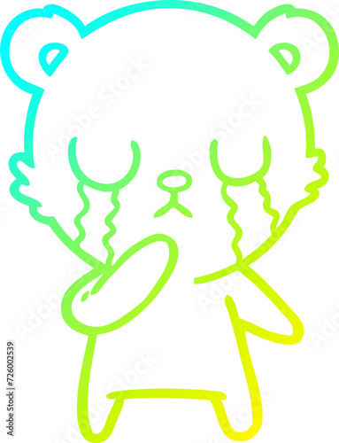 Fototapeta premium cold gradient line drawing crying polar bear cartoon