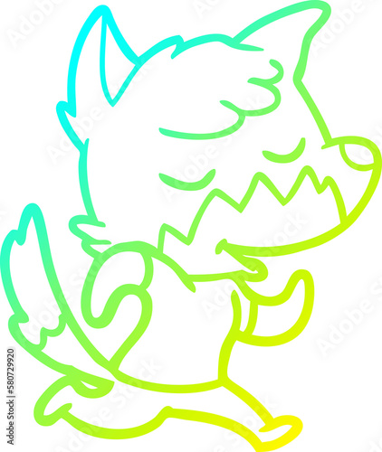 Fototapeta premium cold gradient line drawing friendly cartoon fox running