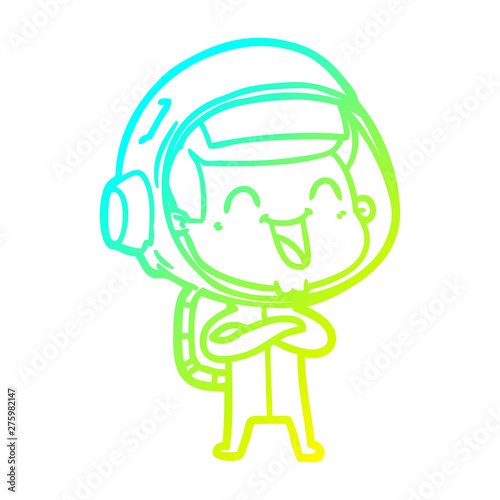 © lineartestpilot, Fototapeta premium cold gradient line drawing happy cartoon astronaut
