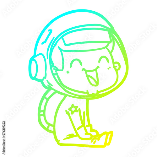 © lineartestpilot, Fototapeta premium cold gradient line drawing happy cartoon astronaut