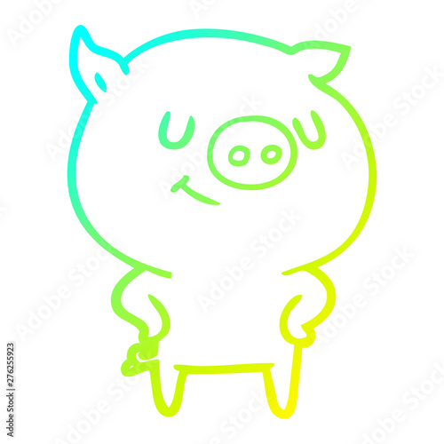 Fototapeta premium cold gradient line drawing happy cartoon pig