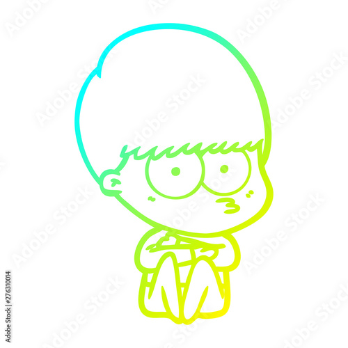 © lineartestpilot, Fototapeta premium cold gradient line drawing nervous cartoon boy