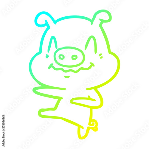 © lineartestpilot, Naklejka premium cold gradient line drawing nervous cartoon pig dancing