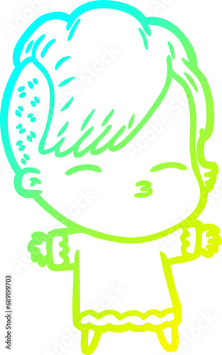 Fototapeta premium cold gradient line drawing of a cartoon squinting girl